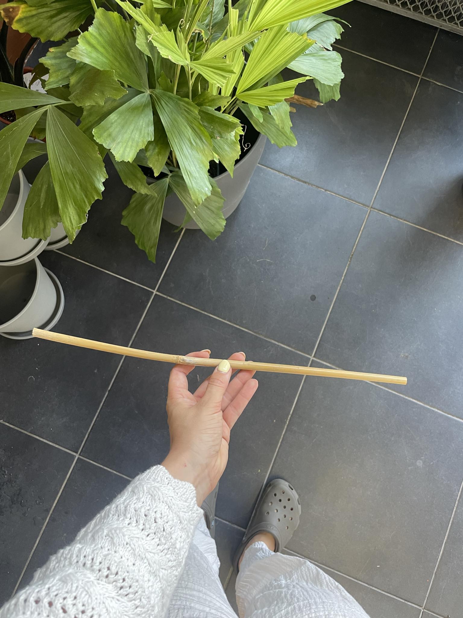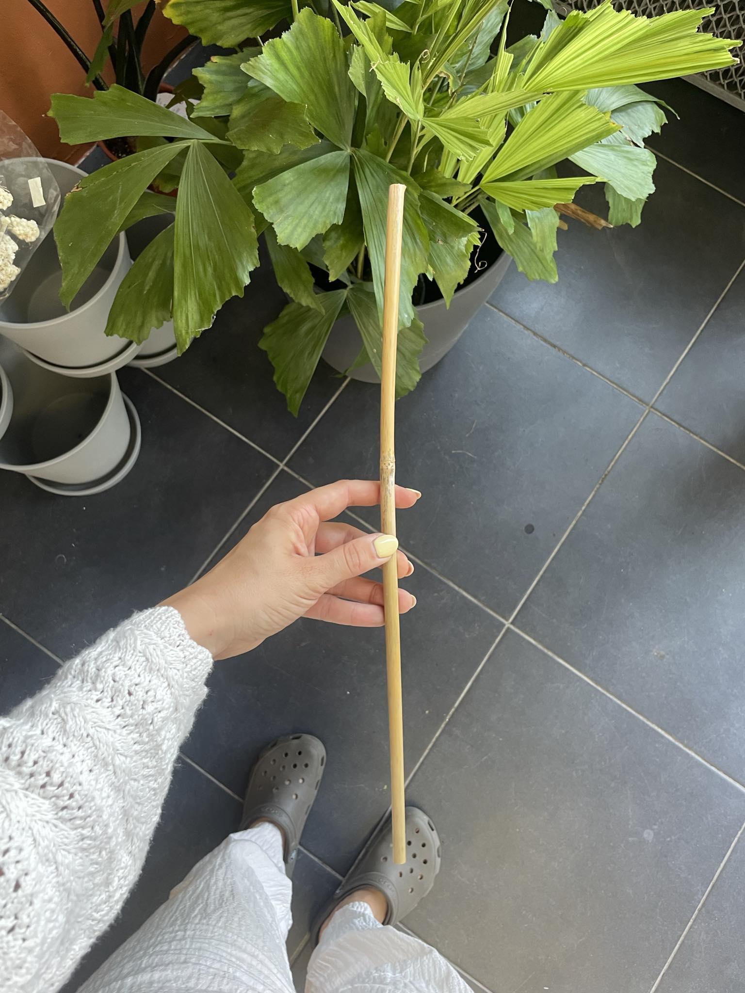 Wygląd: Tyczka bambusowa ma prosty, cylindryczny kształt i naturalny, ciepły odcień brązu, który doskonale komponuje się z roślinami i ich otoczeniem. Jej powierzchnia jest gładka i równa, co zapewnia estetyczny wygląd i wygodne użytkowanie.