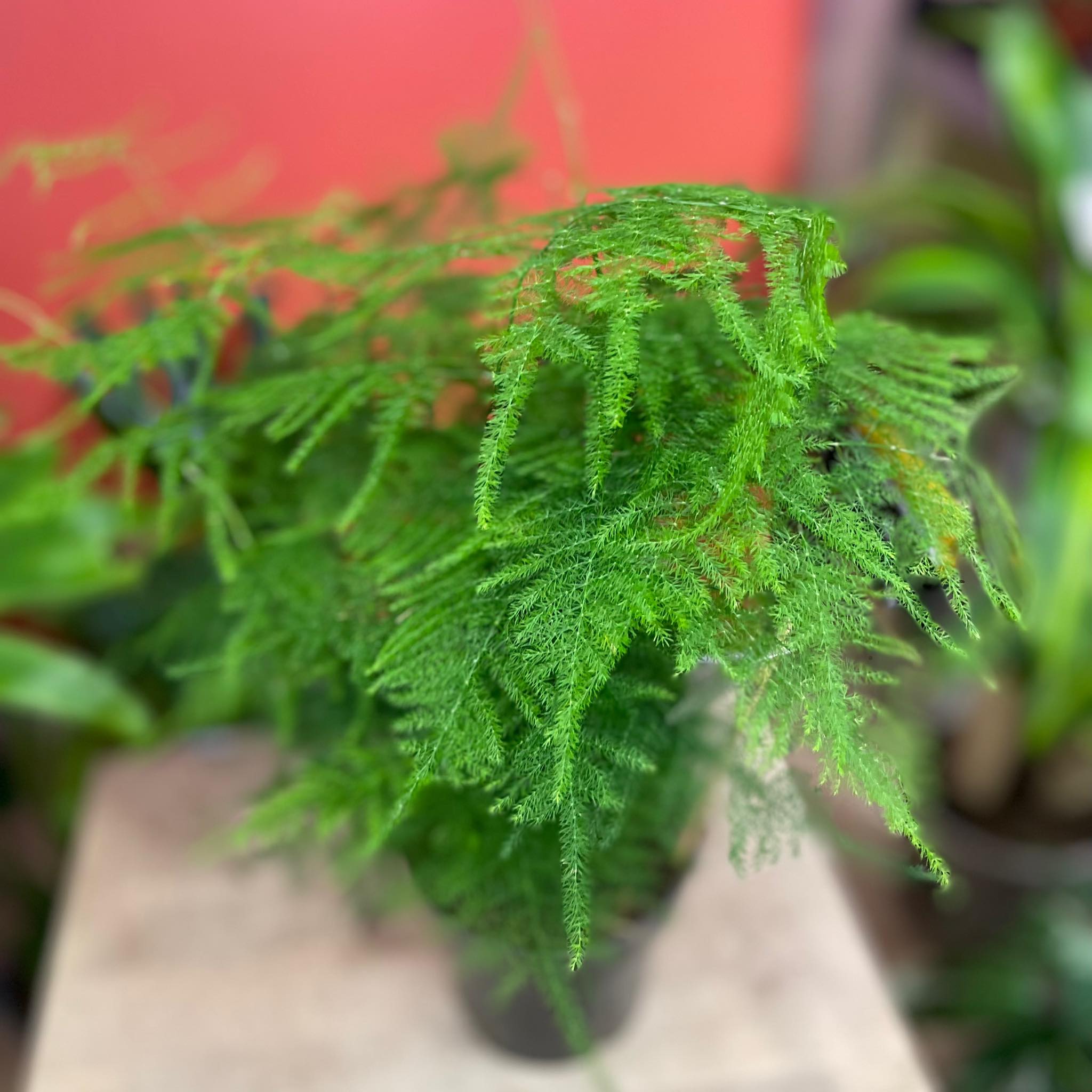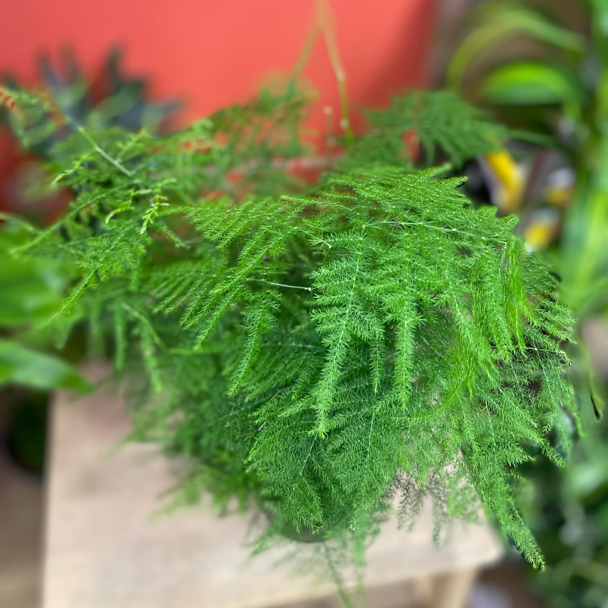 Asparagus setaceus 'Plumosus', czyli szparag pierzasty, to wyjątkowo delikatna i dekoracyjna roślina o cienkich, miękkich pędach pokrytych drobnymi „igiełkami”.