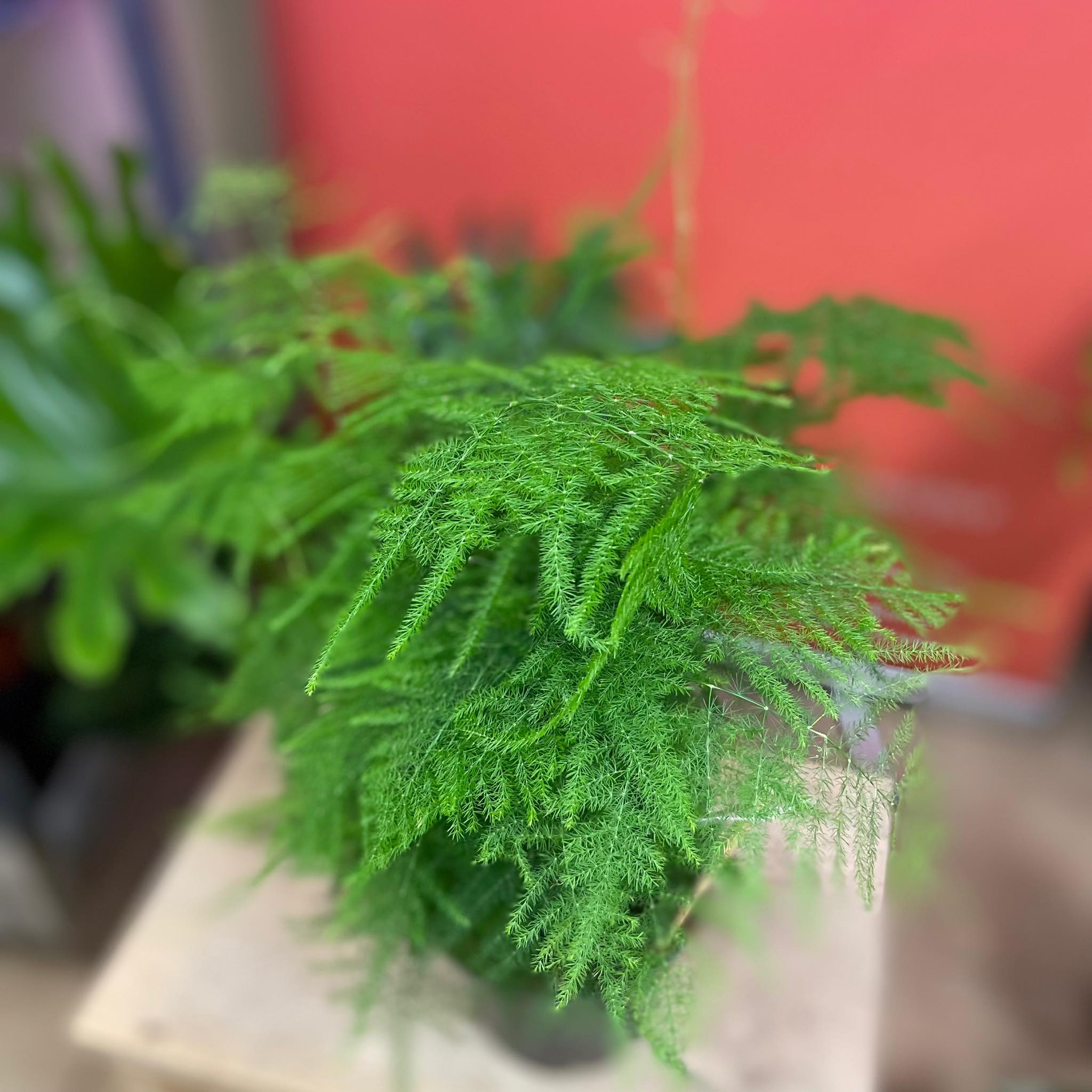 Asparagus setaceus 'Plumosus' to lekka, zwiewna roślina o delikatnym, pierzastym wyglądzie.